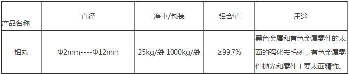 鋁丸又名鋁砂、鋁顆粒,主要應用于鋁、鋅或薄壁工件的表面噴拋處理,也可與不銹鋼丸按一定比例混合使用,對工件表面具有明顯的增白效果。