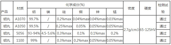 從原料(鋁錠)至出成品過程中無其他成分進入,無接觸其他金屬。使用DF—100型直讀光譜儀,等離子體電感耦合原子發射光譜等檢測儀器。入庫之前每個工序層層把關,層層檢測。不放過一個微小的細節,從而使我們的產品性能長期穩定。每批鋁丸含量99.7%。